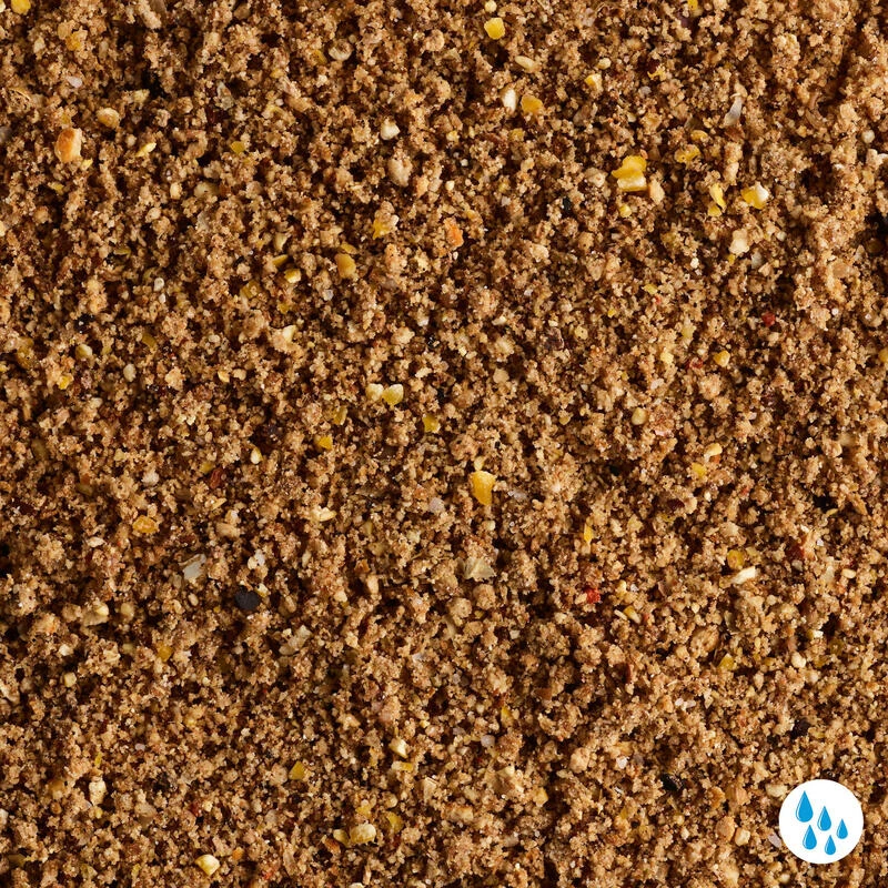 Chapelure, maïs, PV1 (blé, mélasse), tourteaux de coprah, coriandre (5%).